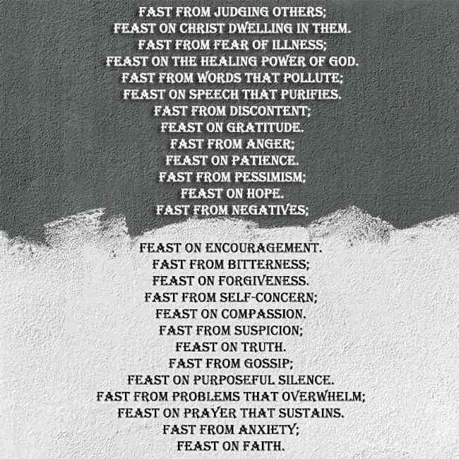 Lent is a time to fast from certain things and to feast on others.